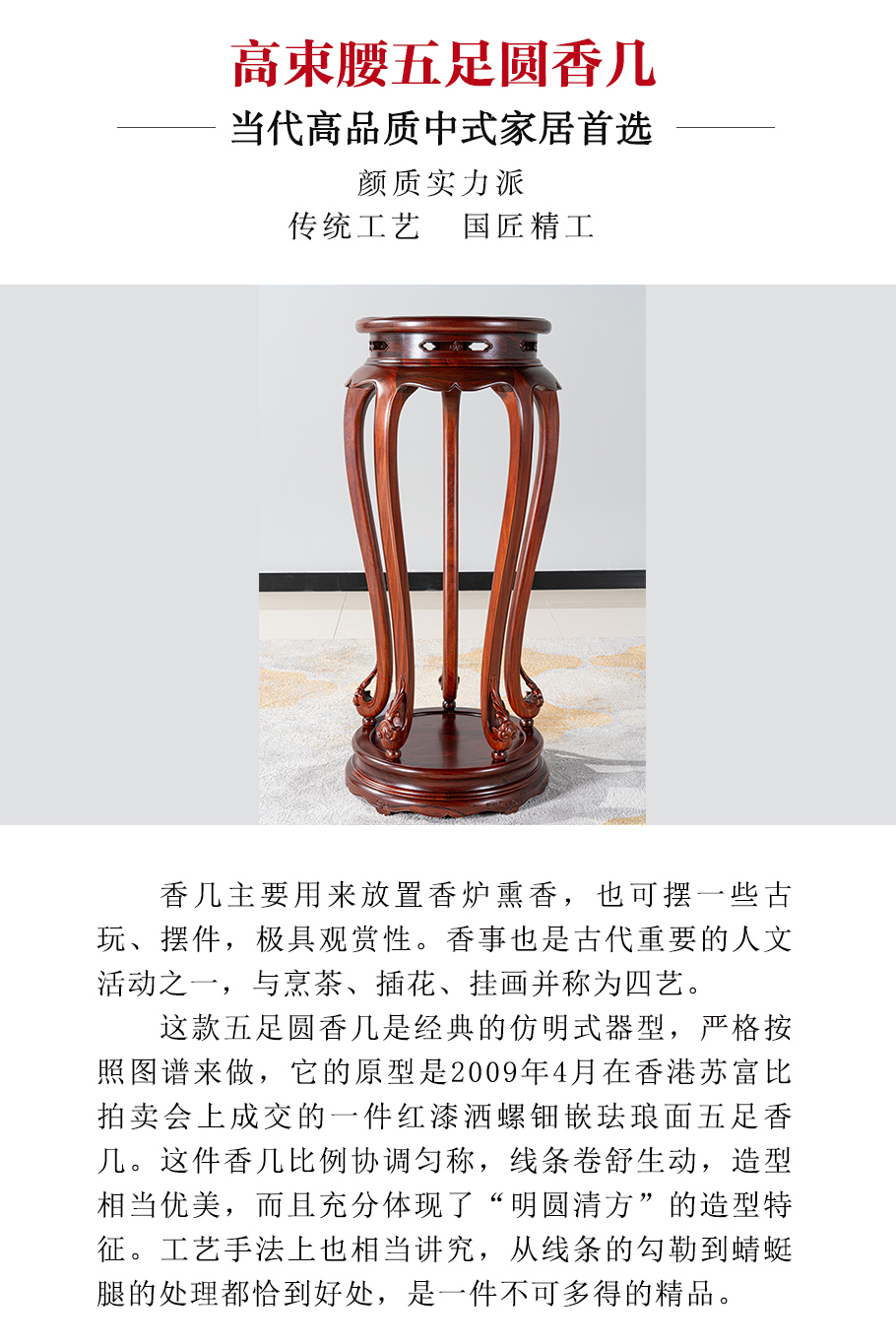 高束腰五足圓香幾